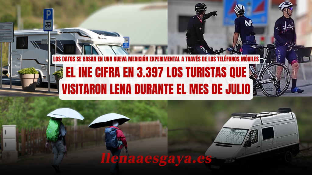 Los últimos datos publicados son los del mes de julio, en llenaaesgaya.es nos centramos en los datos de Lena, puesto que el Instituto Nacional de Estadística ofrece los datos por concejos. El INE separa además los datos de turistas extranjeros o internos (con origen en otras regiones de España, no se contabilizan visitas de personas de otros puntos de Asturias).