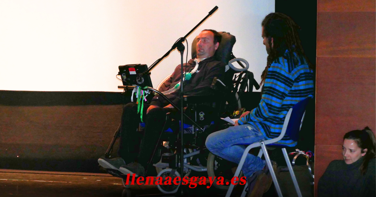 Capitán, que apenas tiene movilidad en la boca y los ojos, y se expresa a través de una tablet con altavoz, explico mientras se proyectaban varios vídeos su evolución, así como su pasado como deportista semiprofesional, cuando llego a hacerse con el subcampeonato de España de carreras de montaña hasta en 4 ocasiones. En 2005 Capitán marcó el récord siendo el corredor con la ascensión más rápida al Angliru, a día de hoy, veinte años después, nadie ha superado su marca. La ELA ha cambiado totalmente su vida, limitando su movilidad al máximo, a pesar de ello, no pierde la esperanza en que se encuentre una cura y en seguir viviendo y disfrutando, por ejemplo, de como crecen sus hijos.