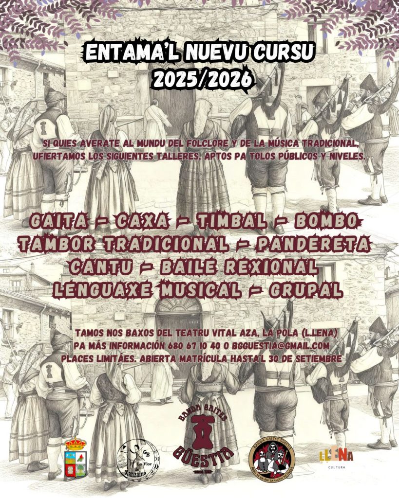 La Banda de Gaitas Güestia pone en marcha el curso 2025/2026 de sus talleres de música tradicional asturiana, una iniciativa abierta a todos los públicos y niveles, con el objetivo de acercar el folclore a nuevas generaciones y mantener vivas nuestras raíces culturales.