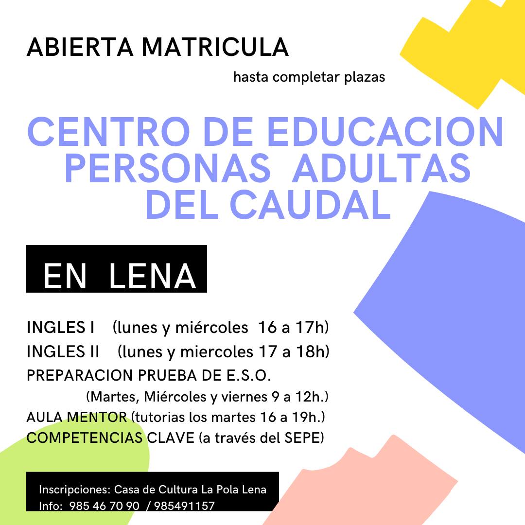 Abierta matricula hasta completar places nel Centru d’Educación d’Adultos del Caudal.