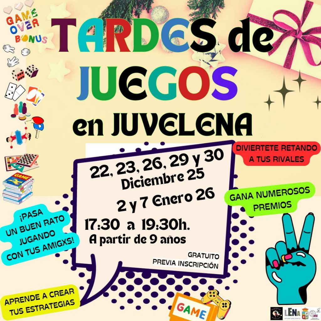 Juvelena ha puesto en marcha las inscripciones para participar en las Tardes de Juegos de Navidad, una propuesta lúdica dirigida a jóvenes a partir de 9 años que se desarrollará durante varios días de diciembre y enero.