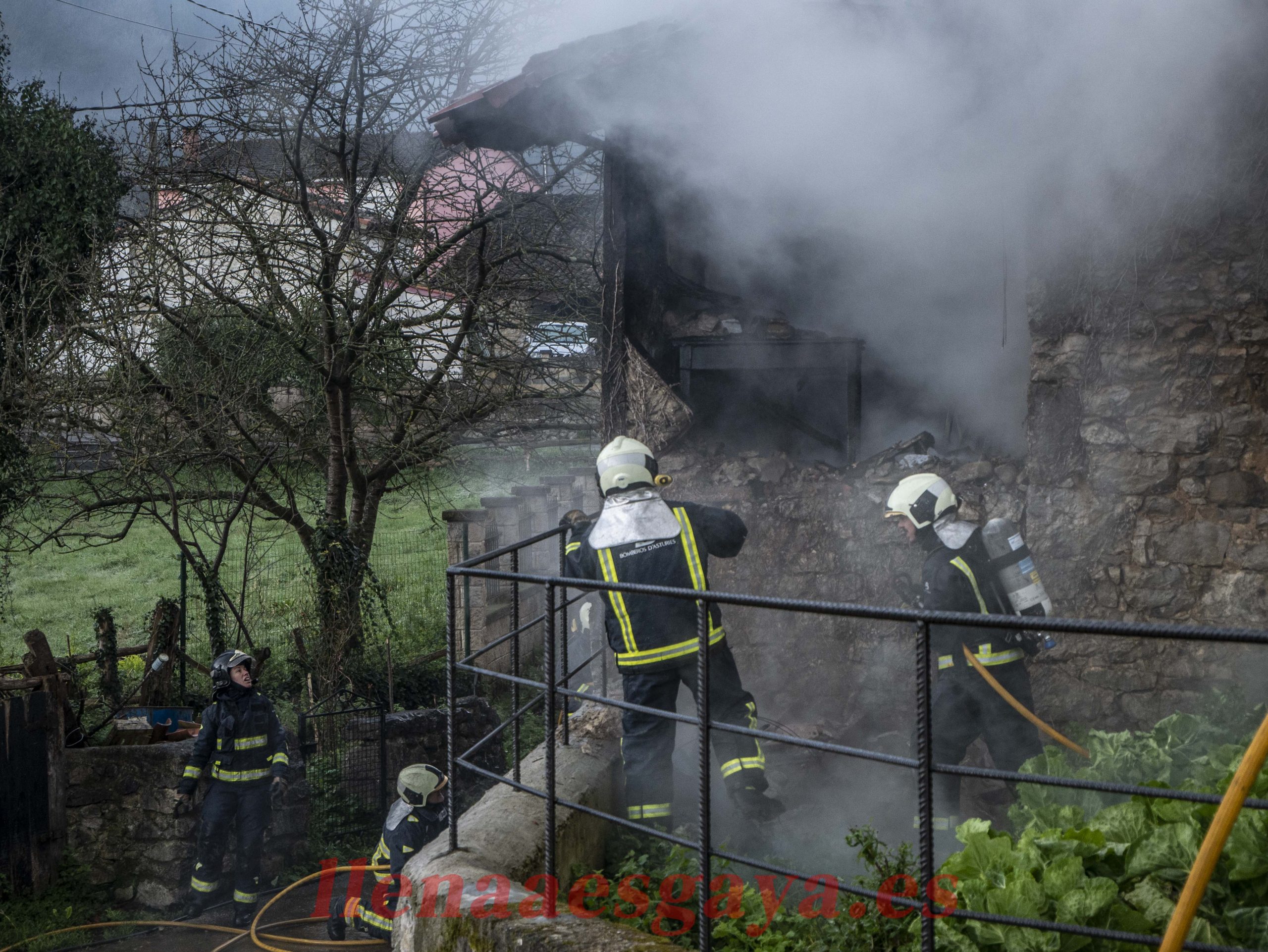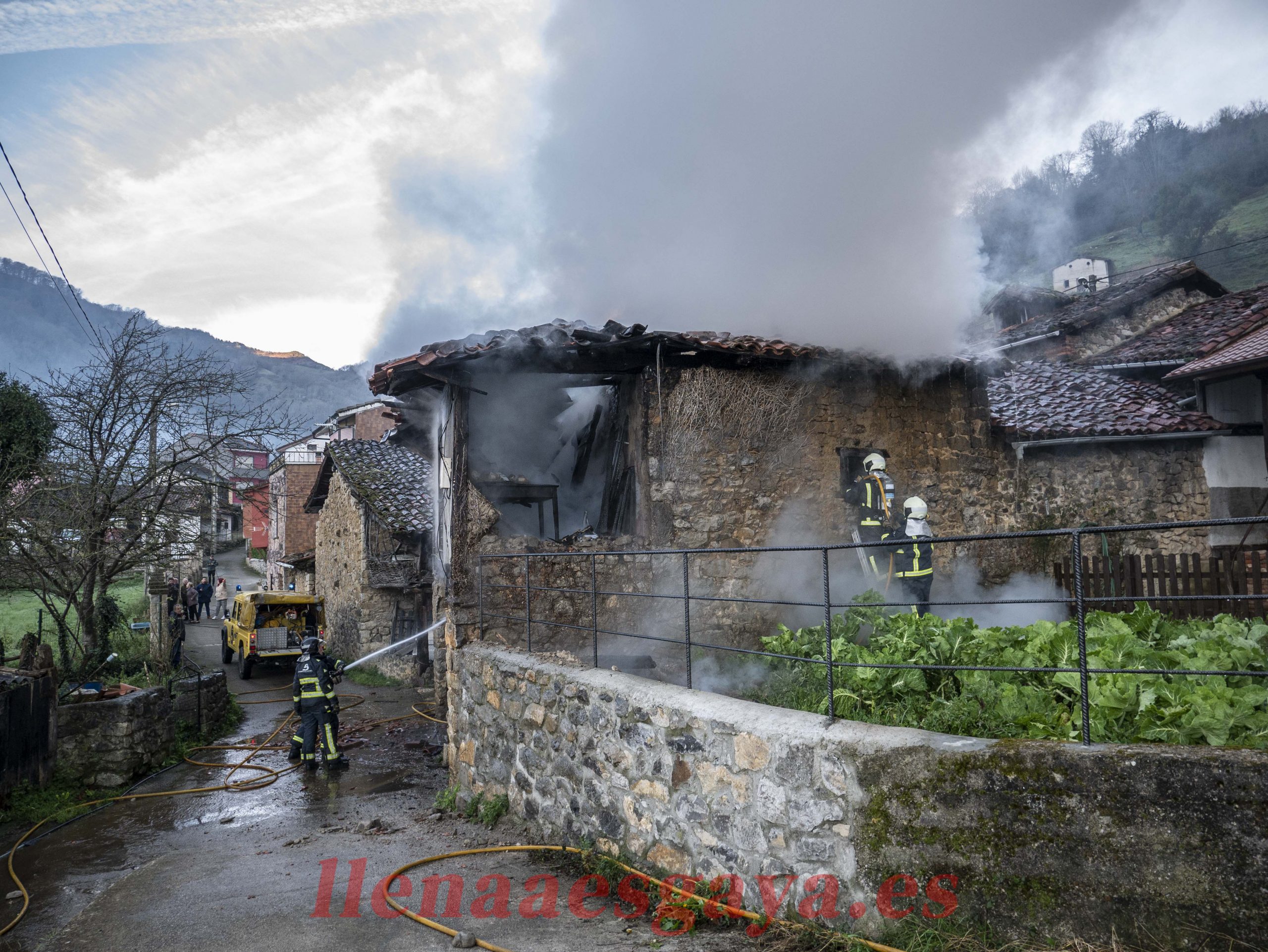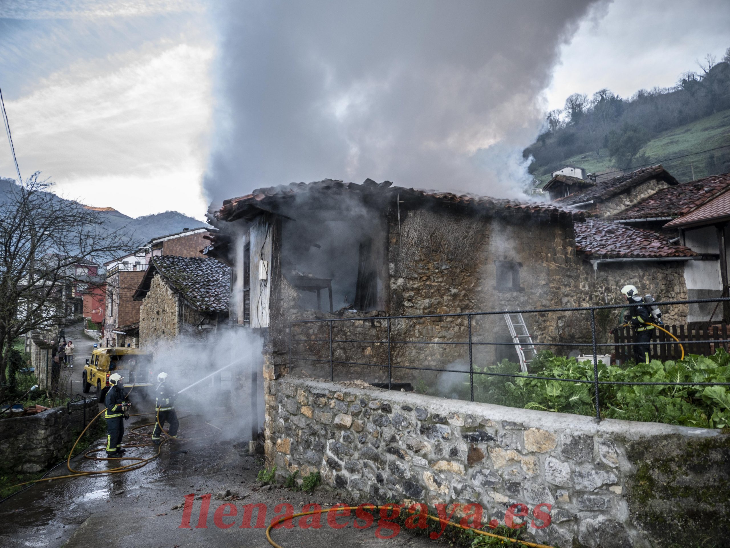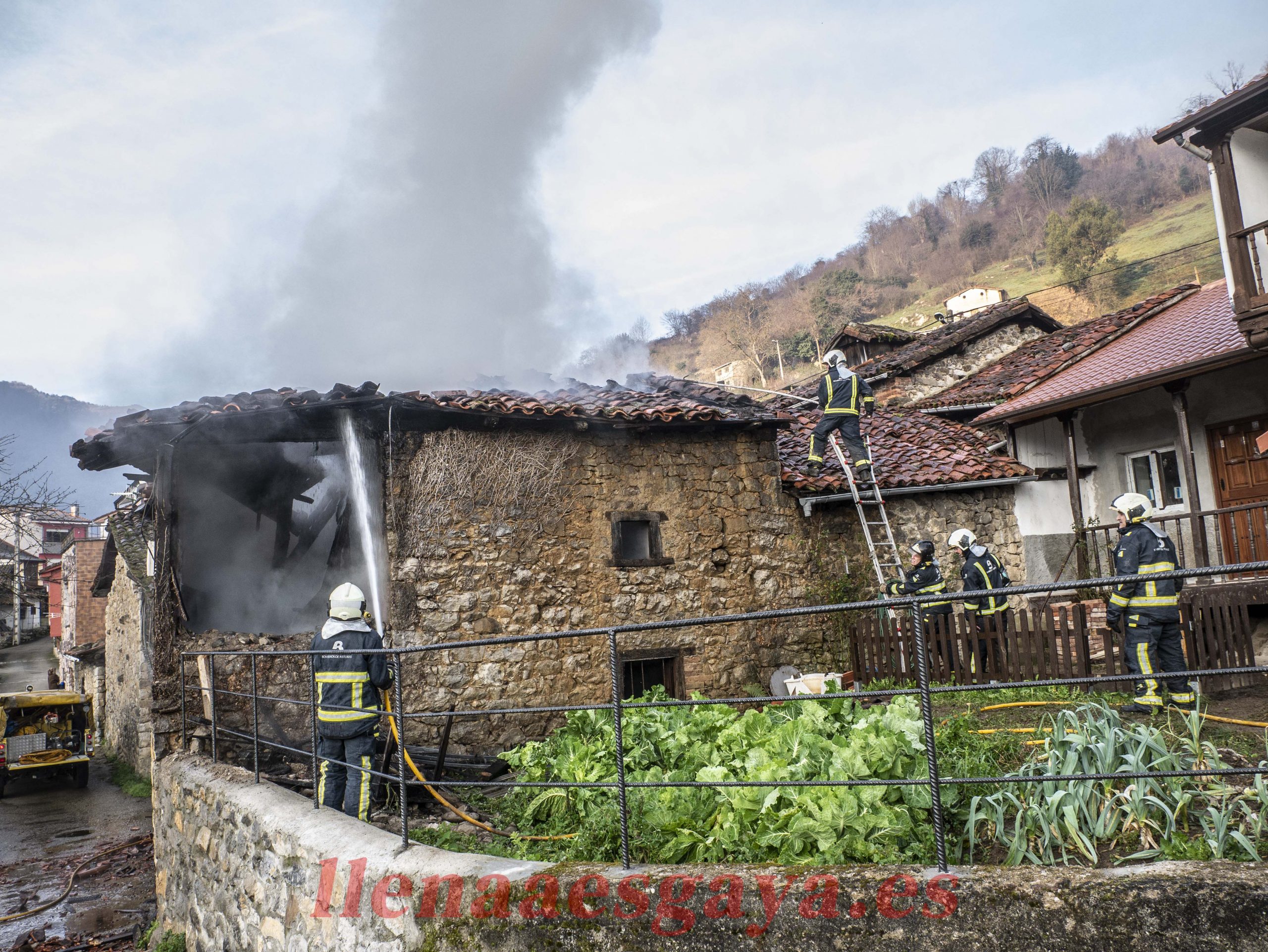 Una vez en el lugar, los efectivos se encontraron con el incendio totalmente desarrollado. Las llamas provocaron la caída del piso intermedio de la casa, de dos plantas, y del tejado. La dotación se centró en atacar las llamas, desde el exterior, con tres líneas de agua, para evitar su extinción y evitar su propagación a las construcciones colindantes. Al igual que en el segundo incendio, los Bomberos destacaron la colaboración de los vecinos, que en el pueblo cuentan con una manguera de la asociación, y cuya actuación fue crucial para evitar males mayores