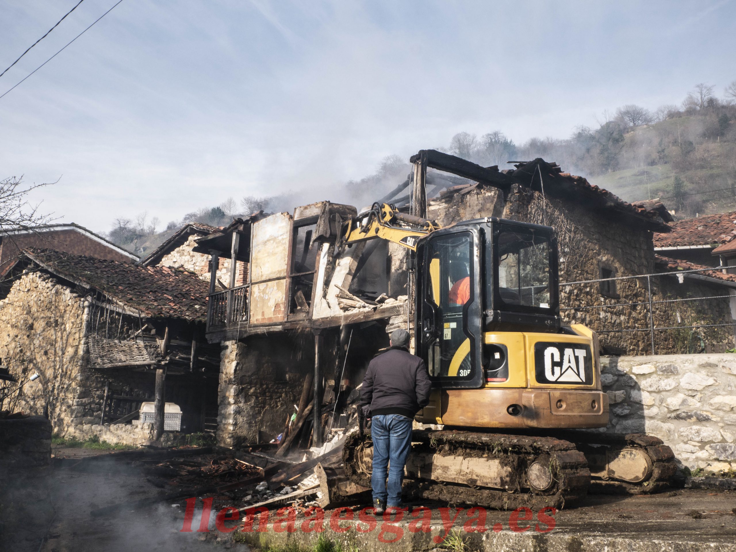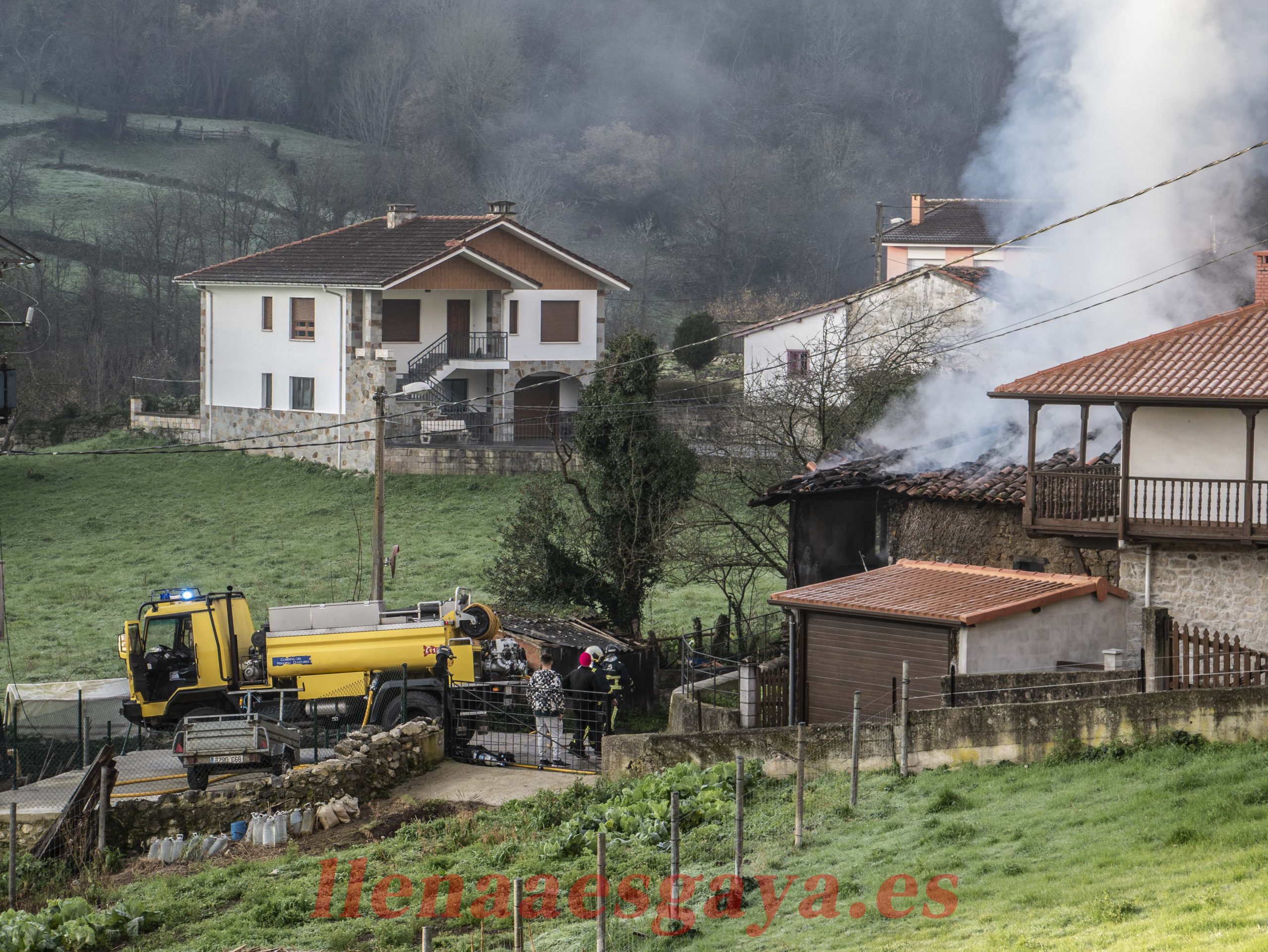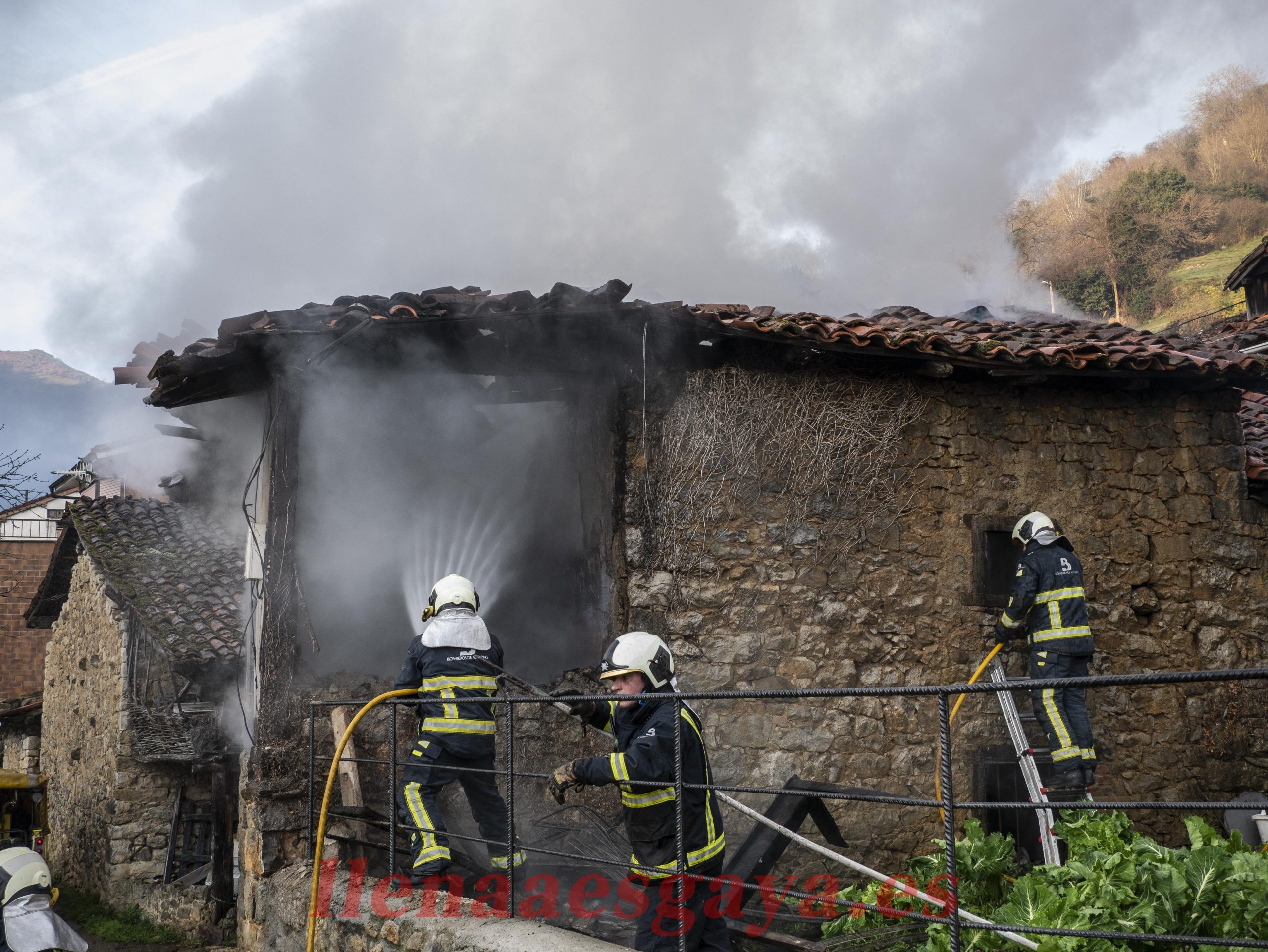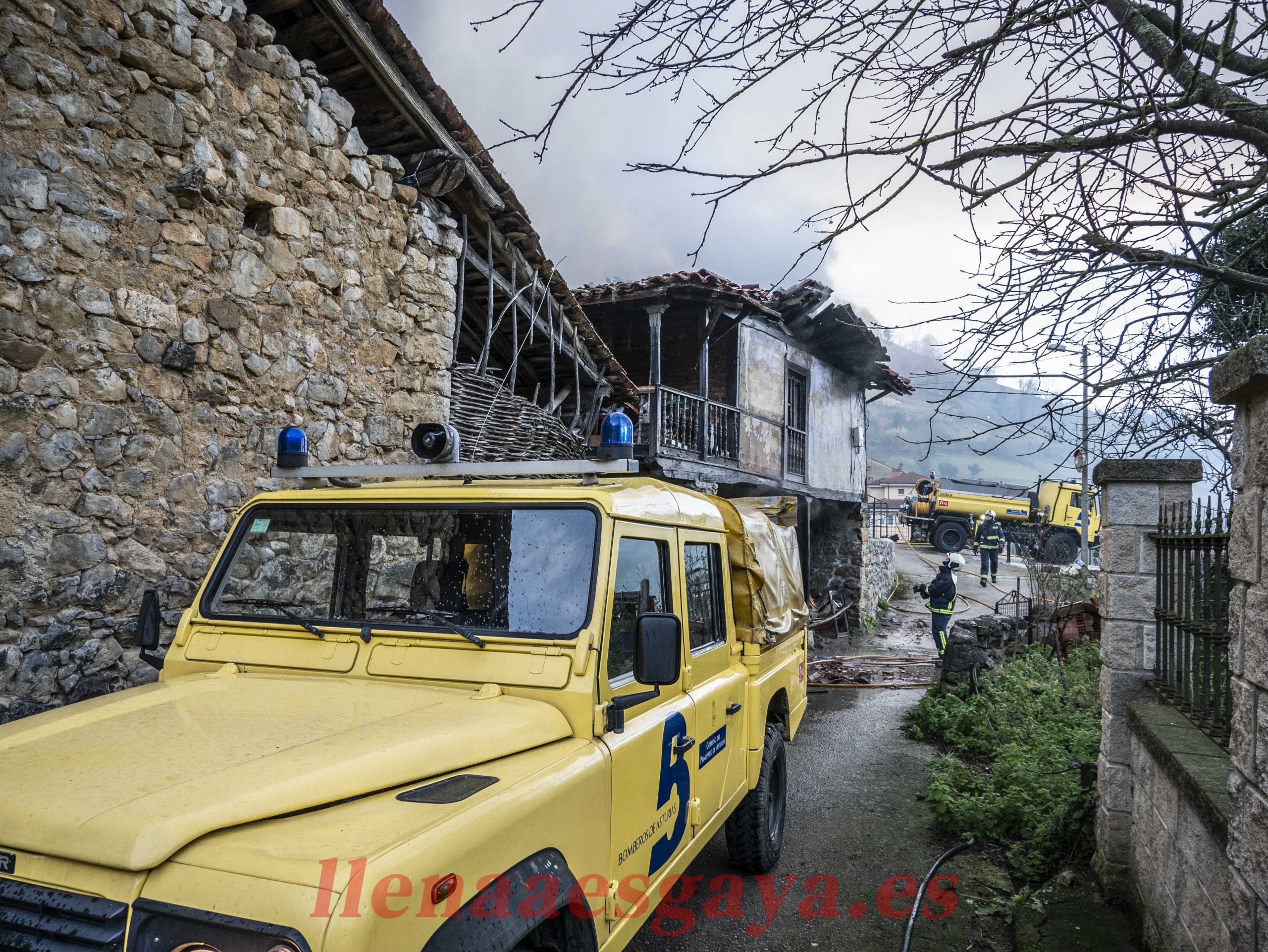 Una vez en el lugar, los efectivos se encontraron con el incendio totalmente desarrollado. Las llamas provocaron la caída del piso intermedio de la casa, de dos plantas, y del tejado. La dotación se centró en atacar las llamas, desde el exterior, con tres líneas de agua, para evitar su extinción y evitar su propagación a las construcciones colindantes. Al igual que en el segundo incendio, los Bomberos destacaron la colaboración de los vecinos, que en el pueblo cuentan con una manguera de la asociación, y cuya actuación fue crucial para evitar males mayores