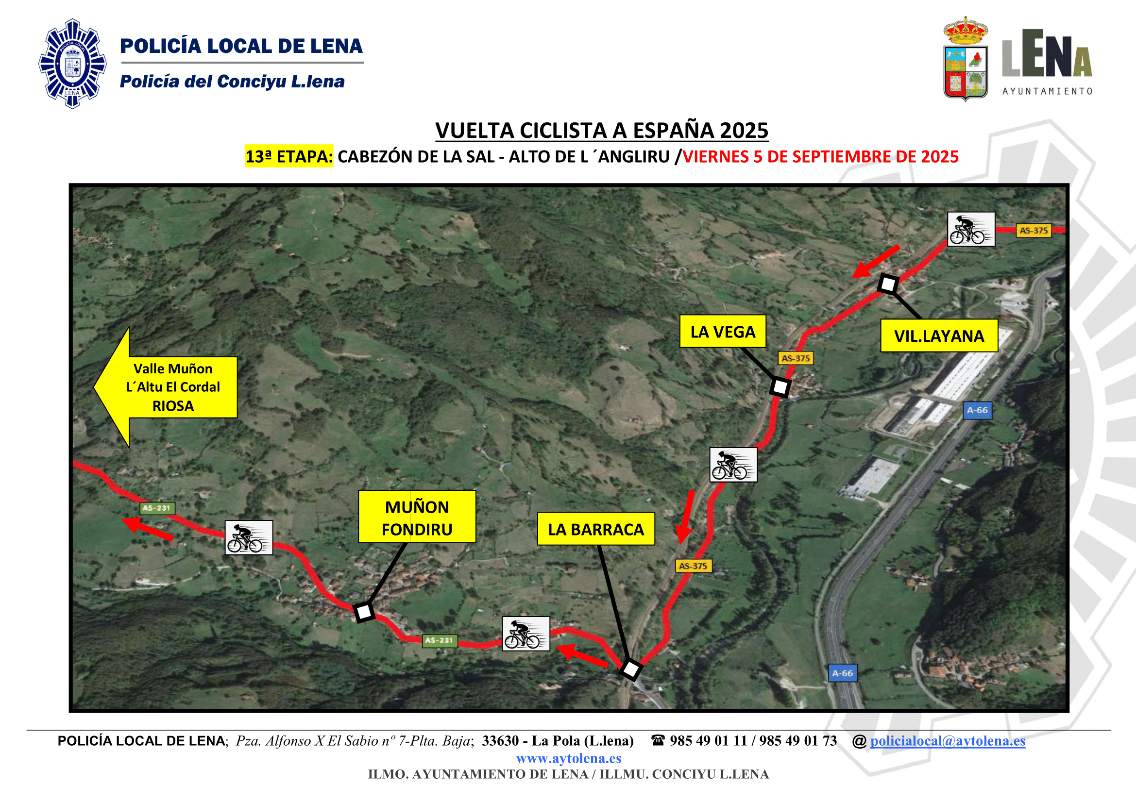 La Policía Local de Lena ha emitido un aviso a la ciudadanía con motivo del paso de la 13ª etapa…