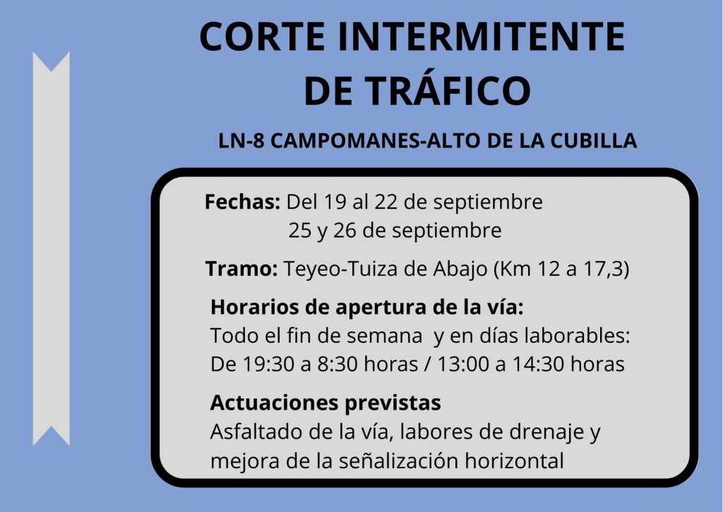 AVISO: NUEVOS CORTES DE TRÁFICO EN LA CUBILLA