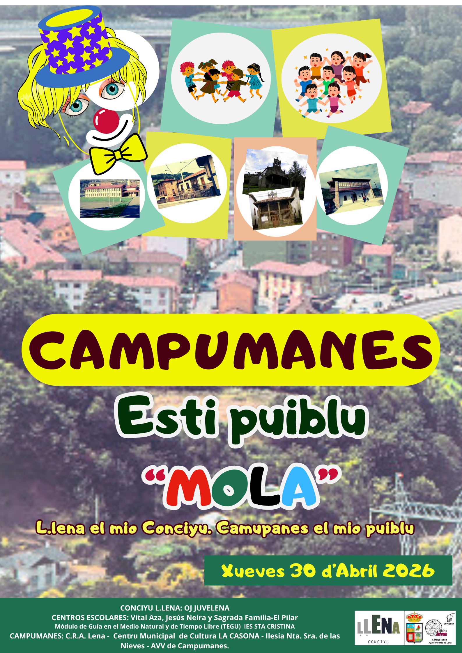 La iniciativa está organizada por el Ayuntamiento de Lena a través de OJ Juvelena, con la participación de los centros educativos implicados, el módulo de Guía en el Medio Natural y de Tiempo Libre (TEGU) del IES Santa Cristina, así como entidades locales de Campumanes como el CRA Lena, el Centro Municipal de Cultura La Casona, la iglesia de Nuestra Señora de las Nieves y la asociación vecinal.