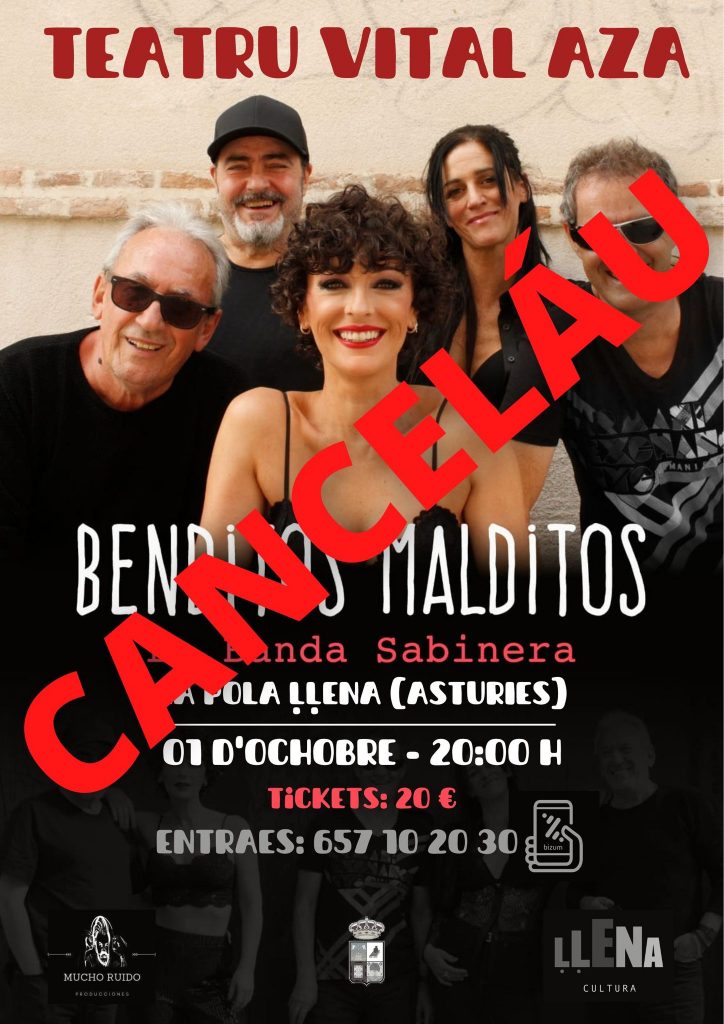 En un comunicado desde el Área de Cultura «lamentan comunicar la cancelación del concierto previsto en el Teatro Vital Aza para el próximo sábado 01 de octubre: con Benditos Malditos – La banda sabinera» a la vez que destacan la misma se produce por «causas ajenas al Área de Cultura del Ayuntamiento de Lena«.