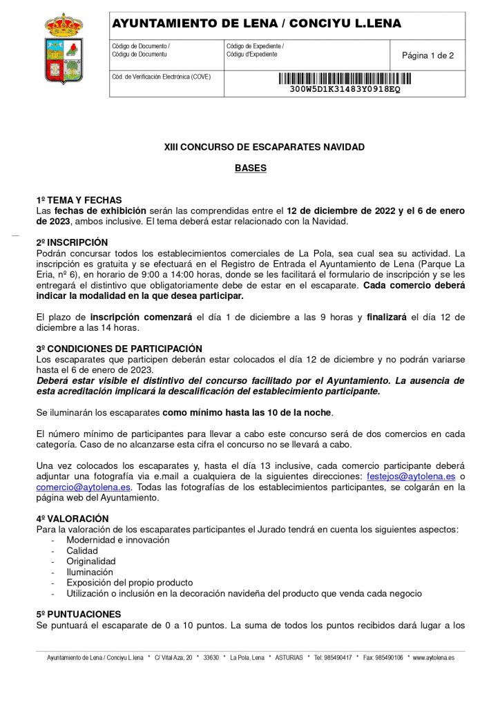 Como cada año, el Ayuntamiento de Lena convoca el concurso de escaparates de Navidad.
