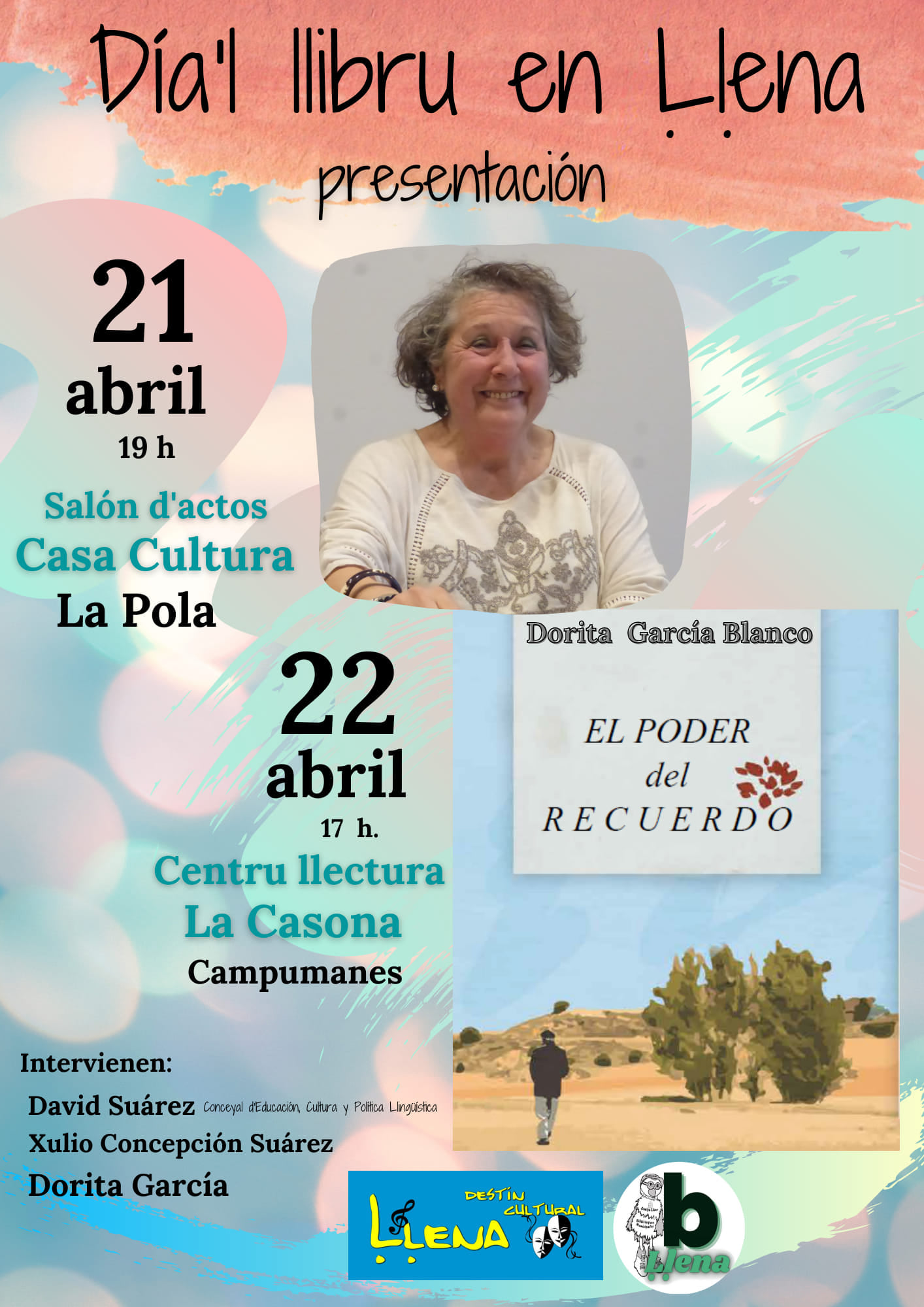 Entorno al día del libro se programan distintas actividades en Ḷḷena, tanto abiertas al público general como otras dirigidas a los escolares lenenses. Una de las actividades programadas es la presentación del libro El poder del recuerdo, firmado por la lenense Dorita García Blanco.