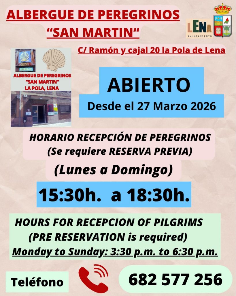El Albergue de Peregrinos “San Martín” de Pola de Lena reabrirá sus puertas este viernes 27 de marzo de 2026, coincidiendo con el inicio de una nueva etapa de actividad para los caminantes que recorren el Camino.