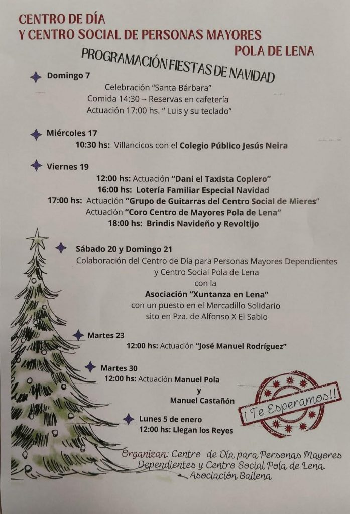 La programación está organizada por el Centro de Día para Personas Mayores Dependientes y el Centro Social de Personas Mayores de Pola de Lena, con la colaboración de la Asociación Bailena.