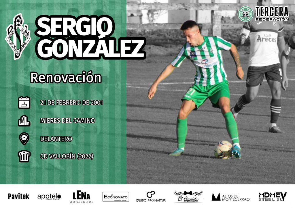 Cuarto integrante confirmado en la plantilla del Lenense Proinastur de cara a la próxima temporada, tras las renovaciones de Pablo Sánchez y Lucas Rodríguez, y el fichaje del lenense Sergio Fernández, se confirma que el delantero Sergio González seguirá vistiendo la verdiblanca.