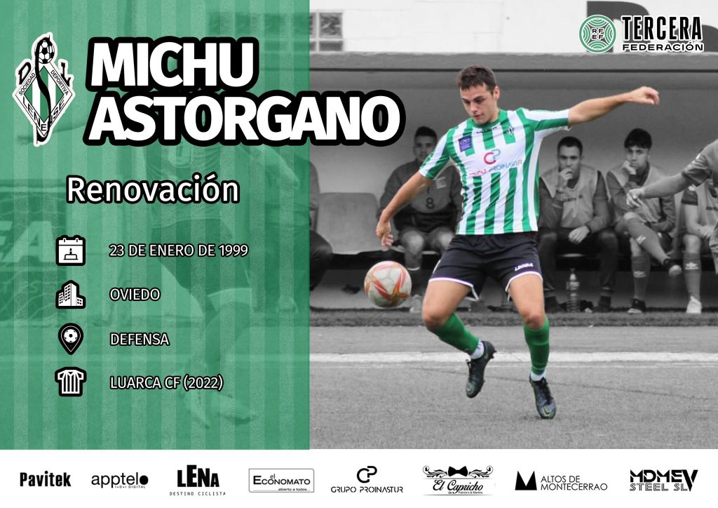 Nueva renovación anunciada en el Lenense Proinastur, se trata del defensa Miguel Astorgano Domínguez ‘Michu’, nuevo integrante confirmado de cara a la próxima temporada tras las renovaciones de Pablo Sánchez, Sergio González y Lucas Rodríguez, y el fichaje del lenense Sergio Fernández.