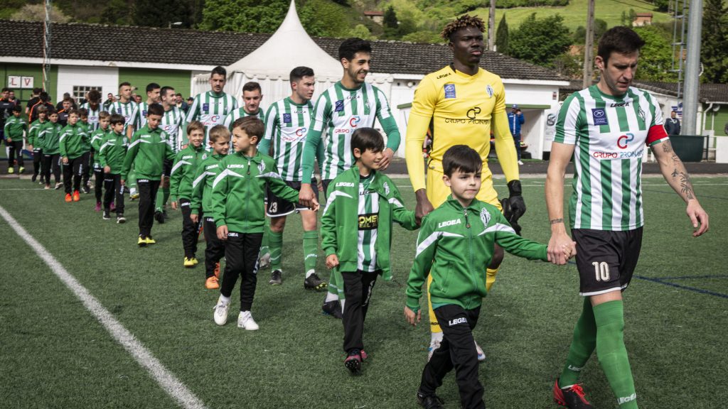 Se acerca el final de liga y la Sociedad Deportiva Lenense Proinastur se encuentra peleando por los primeros puestos en la 1ª RFFPA que le permitan promocionar a Tercera RFEF. Para el encuentro de esta mañana, que se jugaba en el Estadio ALTOSDEMONTECERRAO.COM – El Sotón a las once del mediodía, y finalizaría con victoria verdiblanca por 2 a 0 ante el C.D. Vallobín, se guardaba un papel especial para los jugadores de la cantera.