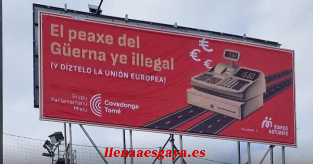 Bajo el lema “El peaxe del Güerna ye illegal (y díztelo la Unión Europea)”, ya se han instalado las primeras vallas publicitarias en puntos estratégicos de carreteras asturianas. En ellas se puede ver una caja registradora colocada sobre una autovía, como metáfora del cobro injustificado por circular por un tramo fundamental para las comunicaciones del Principado.