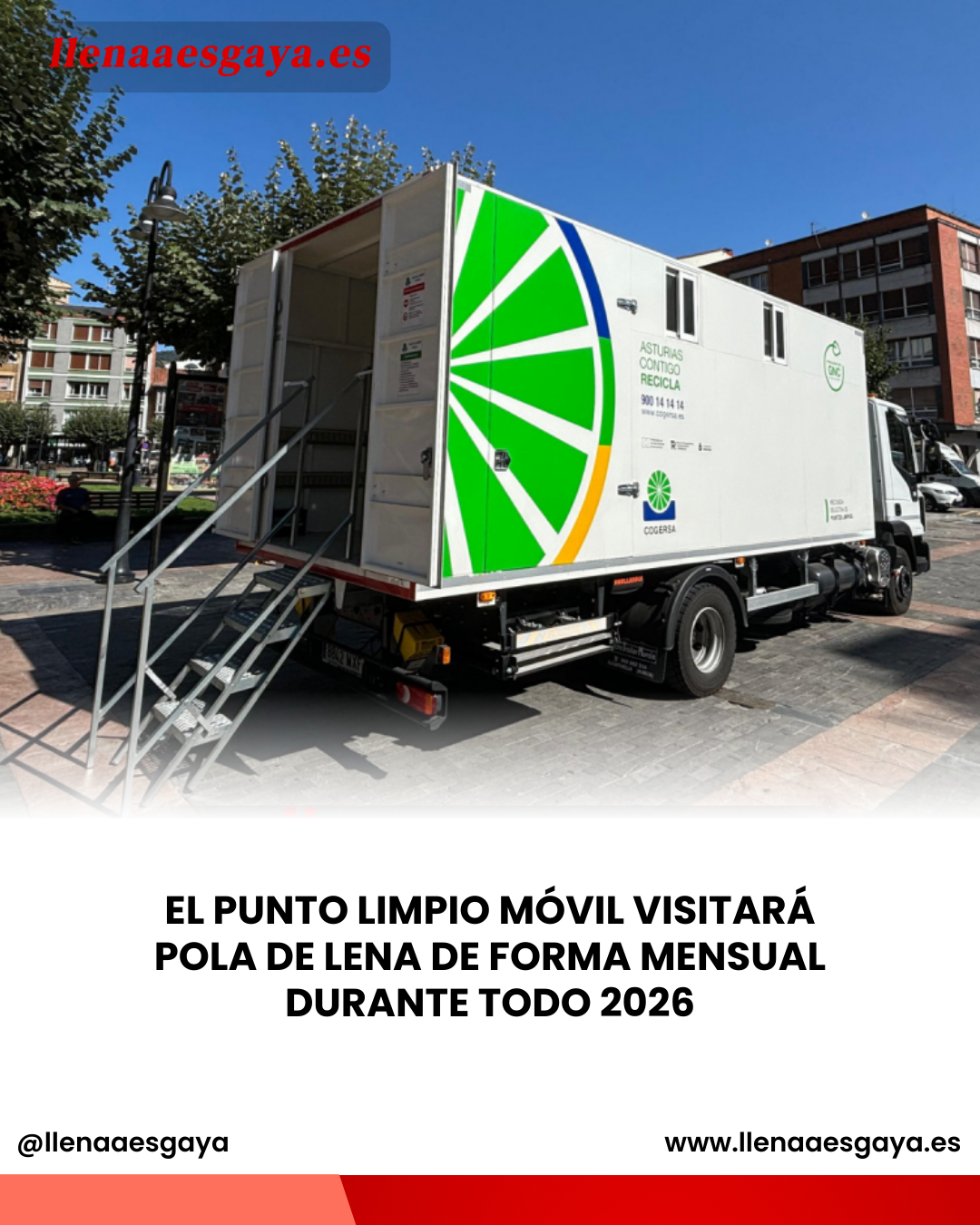 El Punto Limpio Móvil volverá a prestar servicio en Pola de Lena a lo largo de todo el año 2026, con paradas mensuales programadas en la Plaza Alfonso X El Sabio, en horario de 09:00 a 13:00 horas.
