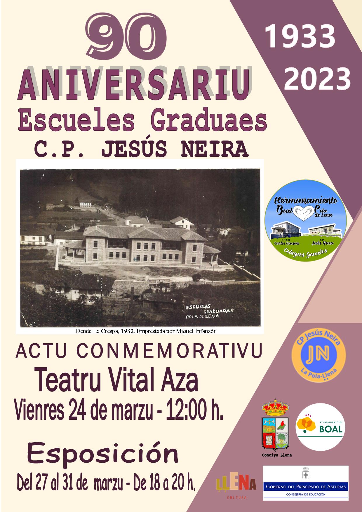 El edificio del Colegio Público Jesús Neira, antiguas Escuelas Graduadas, cumple 90 años. Con motivo del noventa aniversario se celebrarán diversos actos, como un acto conmemorativo y una exposición.