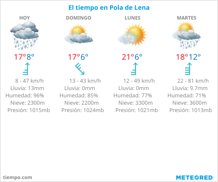 El tiempo en Ḷḷena para los próximos días, según distintos proveedores: