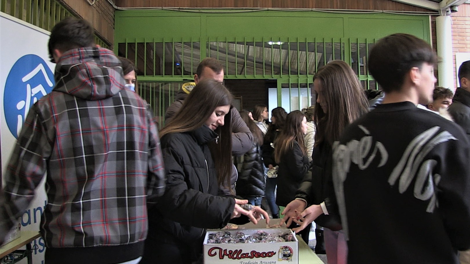 El Instituto Santa Cristina de Lena muestra un año más su lado más solidario, dando continuidad a la iniciativa “Un chocolate por una sonrisa”, dentro de la cual el centro educativo recauda fondos en favor de la Asociación Galbán. Todos los jueves alumnos de 3º de la ESO del programa Diversificación Curricular se encargan de la venta de morenitos y agua, que se lleva a cabo durante los recreos.
