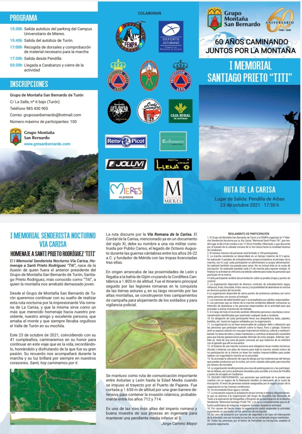 El evento cuenta con la colaboración, entre otros, de la Concejalía de Deportes de Lena y el grupo local de Protección Civil. También con el Ayuntamiento de Mieres, la FEMPA y distintas empresas privadas.