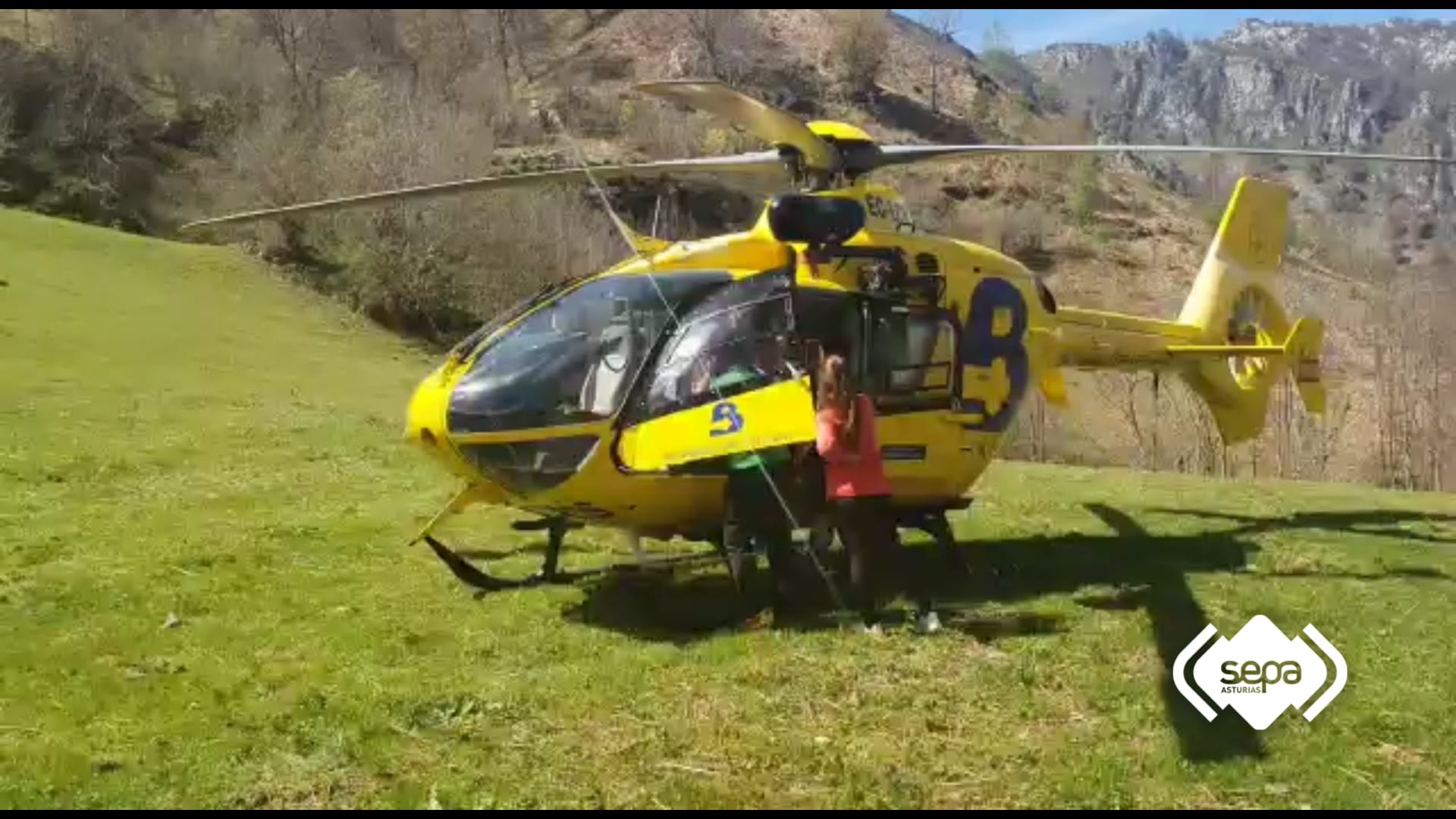 Hasta el lugar se desplazó el Grupo de Rescate de Bomberos de Asturias con el helicóptero medicalizado. El aviso al 112 fue a las 16.49 h. y el equipo regreso a base a las 18.03 h.