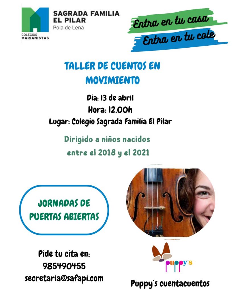 El Colegio ‘Sagrada Familia El Pilar’ organiza este sábado, 13 de abril, una jornada de puertas abiertas especialmente dirigida a las familias con peques nacidos entre 2018 y 2021. La jornada viene acompañada de un taller que impartirá ‘Puppy’s cuentacuentos’, que «nos descubrirá qué es un cuento en movimiento: arte, música, literatura…«, apuntan desde el centro.