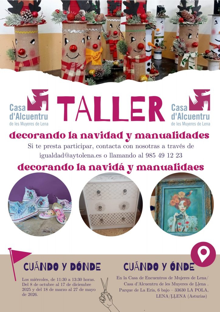 La Casa d’Alcuentru de les Muyeres de Ḷḷena pone en marcha este miércoles 8 de octubre una nueva edición de su taller “Decorando la Navidá y manualidades”, una propuesta creativa que combina el aprendizaje de técnicas decorativas con la preparación de detalles y adornos para las fiestas navideñas.