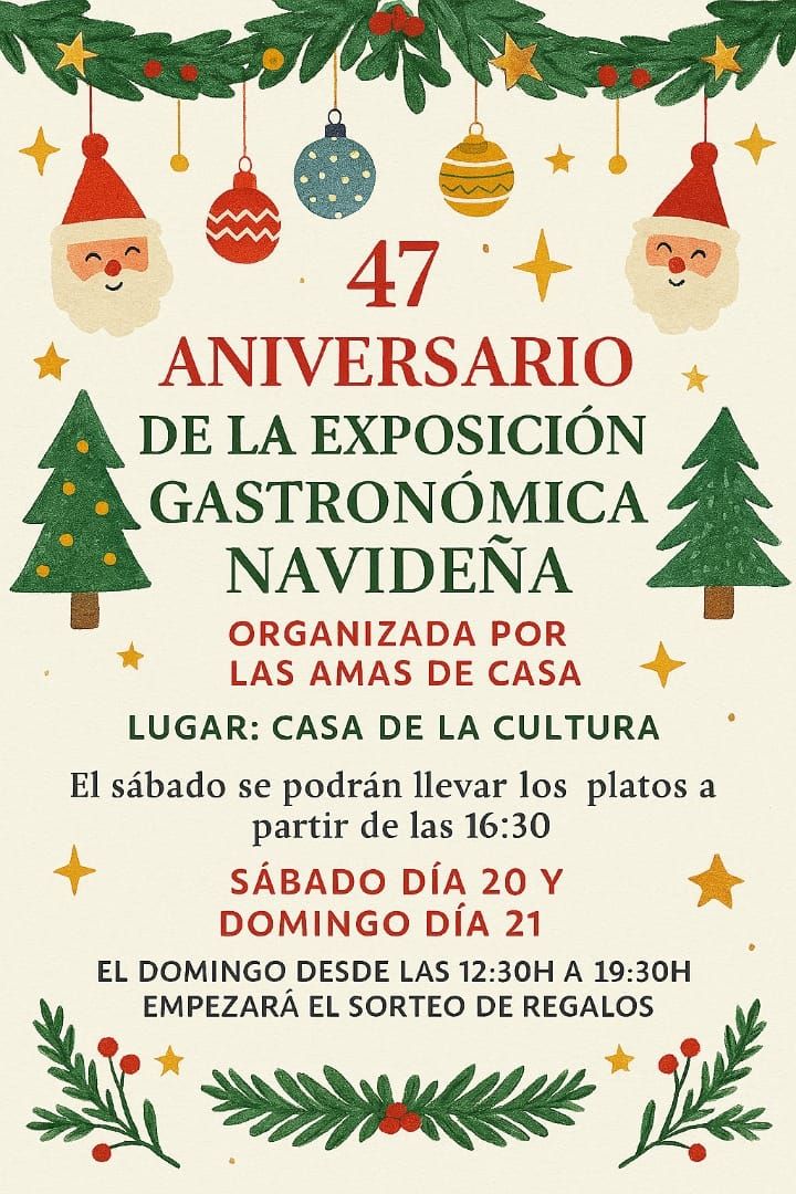 La Exposición Gastronómica Navideña alcanza este año su 47 aniversario y volverá a ser uno de los actos más tradicionales de las fiestas en Lena. La cita se celebrará durante el sábado 20 y domingo 21 de diciembre en la Casa de la Cultura, organizada un año más por la Asociación de Amas de Casa.