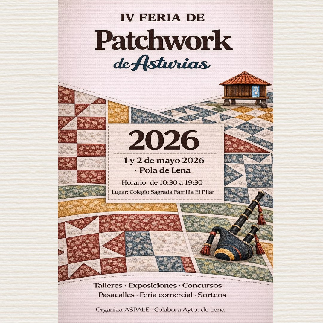 La Pola / Pola de Lena volverá a convertirse en punto de encuentro para las personas aficionadas al patchwork con la celebración de la IV Feria de Patchwork de Asturias, que tendrá lugar los días 1 y 2 de mayo de 2026 en el Colegio Sagrada Familia El Pilar.
