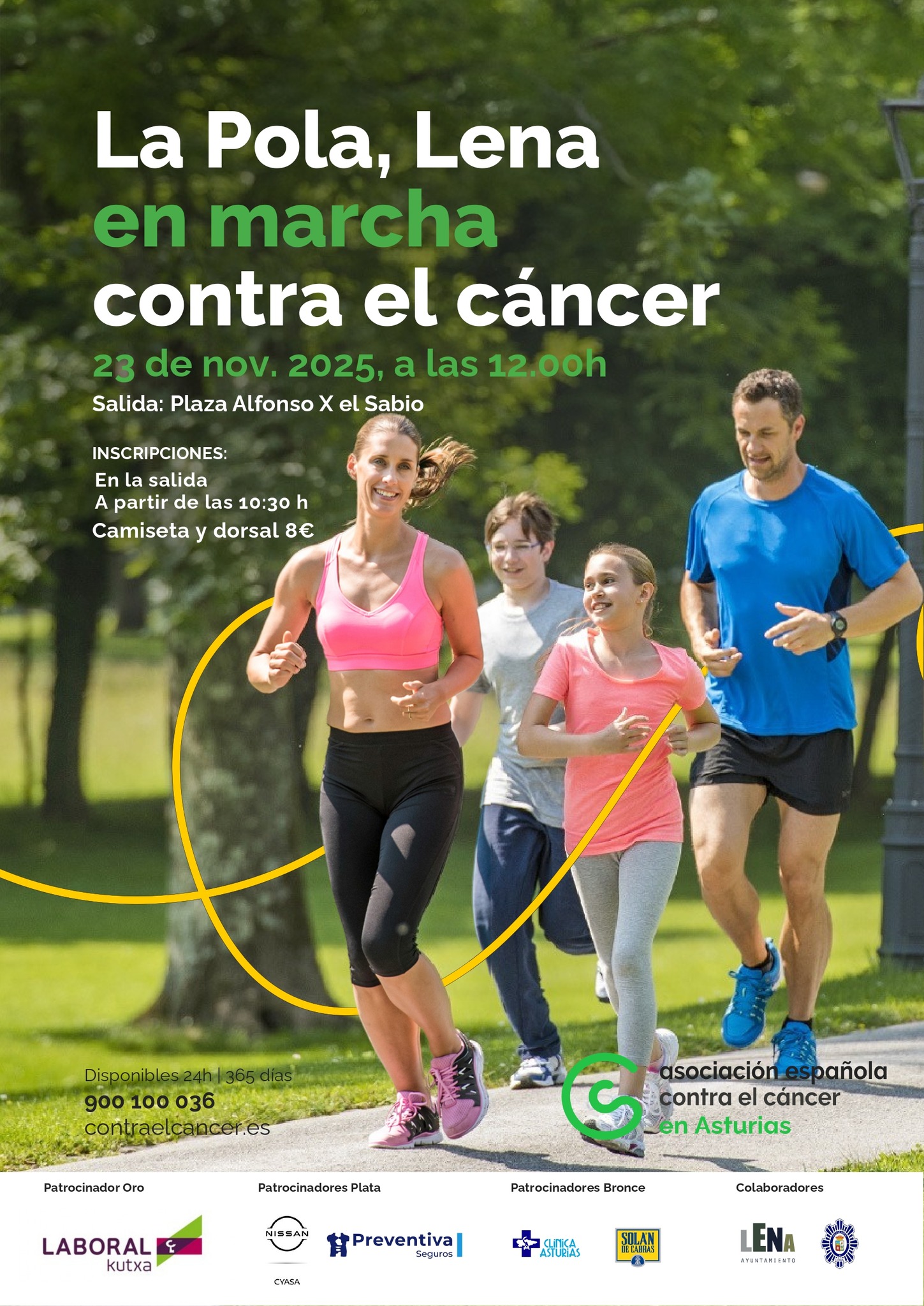La Plaza Alfonso X el Sabio será el punto de encuentro este domingo, 23 de noviembre, para una nueva edición de la marcha solidaria organizada por la Asociación Española Contra el Cáncer (AECC) en Asturias, con la colaboración del Ayuntamiento de Lena.