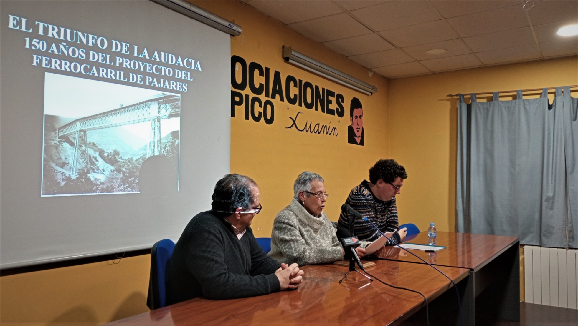 El Hotel de Asociaciones de La Pola acogía en la tarde de ayer la conferencia «El triunfo de la audacia: 150 años del proyecto del ferrocarril de Pajares«, trabajo de Guillermo Bas. A lo largo del acto intervinieron también Javier Fernández, Director del Museo del Ferrocarril, y María Dolores Martínez ‘Mari Loli’, para presentar el acto. A última hora no pudo asistir Paco Valle, Presidente de la Plataforma «Pajares Ferroviario, Preservación y Declaración Patrimonio de la UNESCO«.
