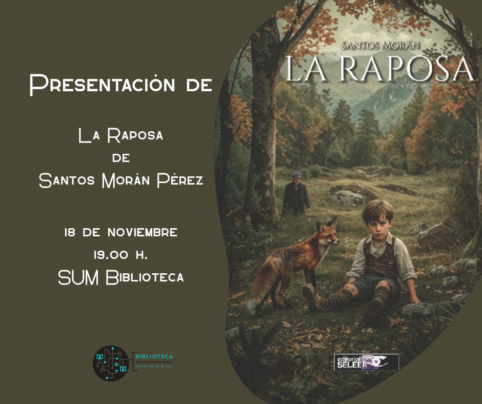 El escritor lenense Santos Morán presentará este martes 18 de noviembre, a las 19:00 horas, su novela “La raposa” en la biblioteca de Pravia. El acto cuenta con entrada libre hasta completar aforo.