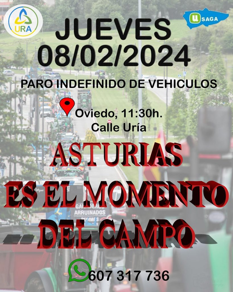 Desde la URA, la semana pasada en la convocatoria de reuniones, apuntaban a que «hemos reiterado la necesidad de poner en marcha una serie de medidas hechas públicas y registradas en la consejería de medio rural en infinidad de ocasiones. Como todos sabéis en países de mucho peso en la UE se están produciendo movilizaciones de calado por múltiples motivos, pero todos llegan al mismo problema de fondo, nuestra forma de vida, la agricultura y la ganadería, están en peligro de extinción en Asturias y en España. Se han llevado a cabo diferentes movilizaciones pacíficas en el año 2023, y varios grupos de ganaderos nos hacen llegar la necesidad de ir un paso más allá ante el nulo caso que se ha hecho a las reivindicaciones por parte del gobierno central y autonómico y el aletargamiento de los sindicatos tradicionales».