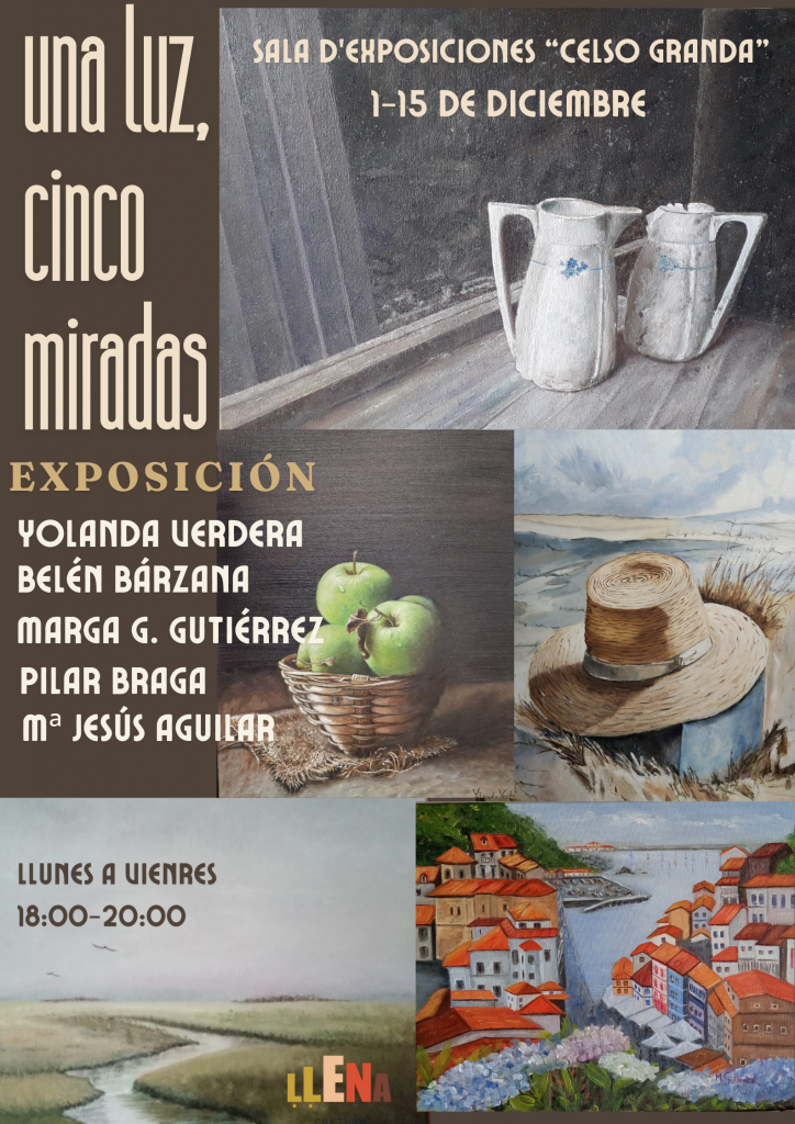 La Sala de Exposiciones Celso Granda, en La Pola, inaugura hoy 1 de diciembre la muestra “Una luz, cinco miradas”, una propuesta conjunta del colectivo Grupo 5, formado por cinco pintoras formadas en el taller del artista Luis Repiso.
