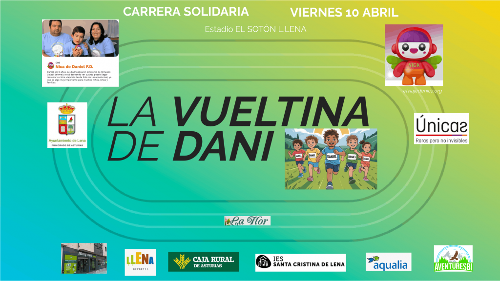 El Estadio de El Sotón, en Pola de Lena, acogerá este viernes 10 de abril la “Vueltina de Dani”, una iniciativa solidaria impulsada desde el IES Santa Cristina de Lena, en la que participará alumnado de distintos centros educativos del concejo junto a familias y vecinos.