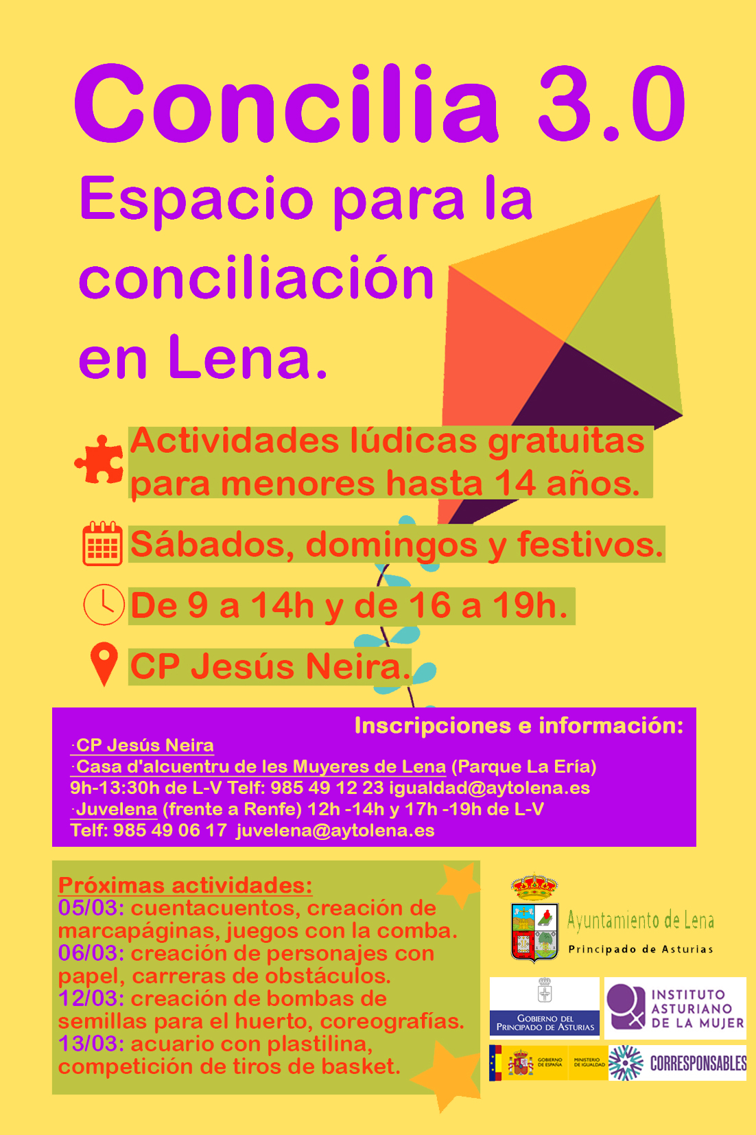 A principios de febrero el Ayuntamiento de Ḷḷena, a través de la áreas de Mujer, Juventud y Bienestar Social, que dirige Natalia Ahilagas, anunciaba la puesta en marcha el programa ‘Concilia 3.0’, que se enmarcaba en el plan ‘Corresponsables’ financiado desde el Ministerio de Igualdad del Gobierno central con la participación de la administración asturiana.