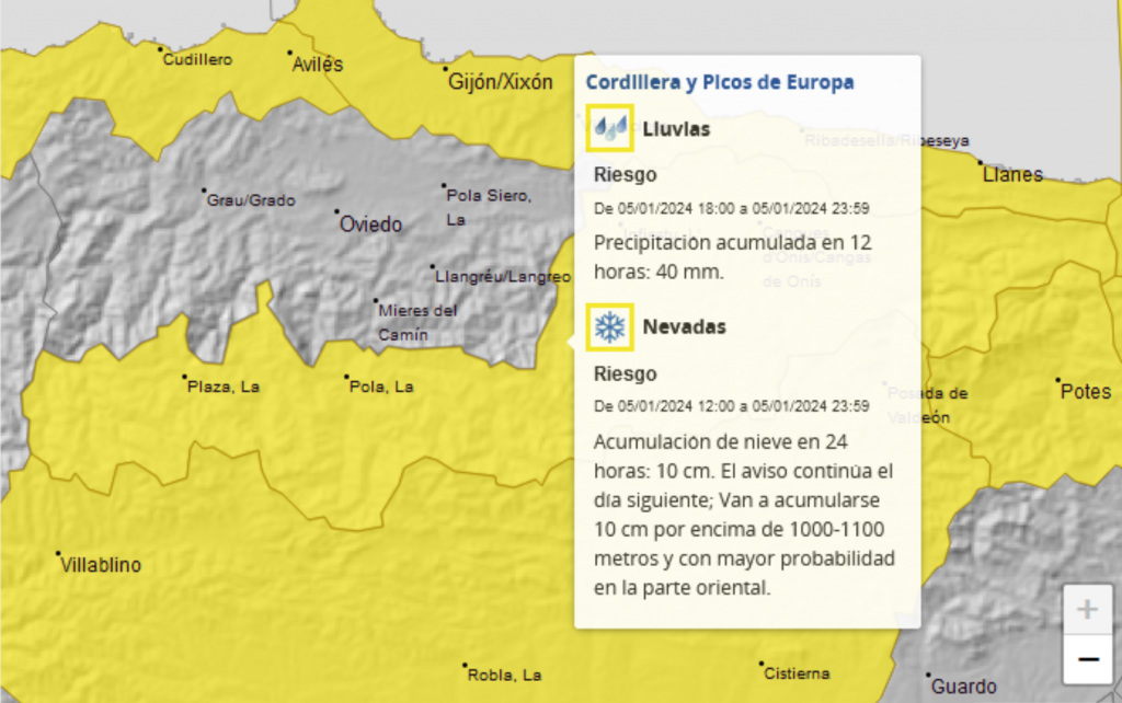 Ante las precipitaciones esperadas mañana, que en cotas por encima de esos 1.000 metros serán en forma de nieve, la AEMET ha activado la alerta amarilla por acumulaciones que pueden llegar a los 10cm en 24 horas. Ante esto, la DGT y los equipos de Conservación de Carreteras ya llevan preparando en los últimos días los dispositivos. En las previsiones actuales la cota de nieve podría descender un poco más el domingo y el lunes, al entorno de los 800 metros, pero son días en los que se espera mucha menos precipitación que para este viernes y sábado. El aviso amarillo por nevadas para mañana ya ha sido extendido a la jornada del sábado.