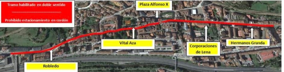 El corte de una de las principales arterias de La Pola provocará desvíos. Para ello se habilitará el doble sentido en la AS-375, desde el cruce de Celso Granda con Hermanos Granda hasta Robledo. Esto provocará que en toda esa zona se prohiba el aparcamiento en cordón, para facilitar la circulación en doble sentido.