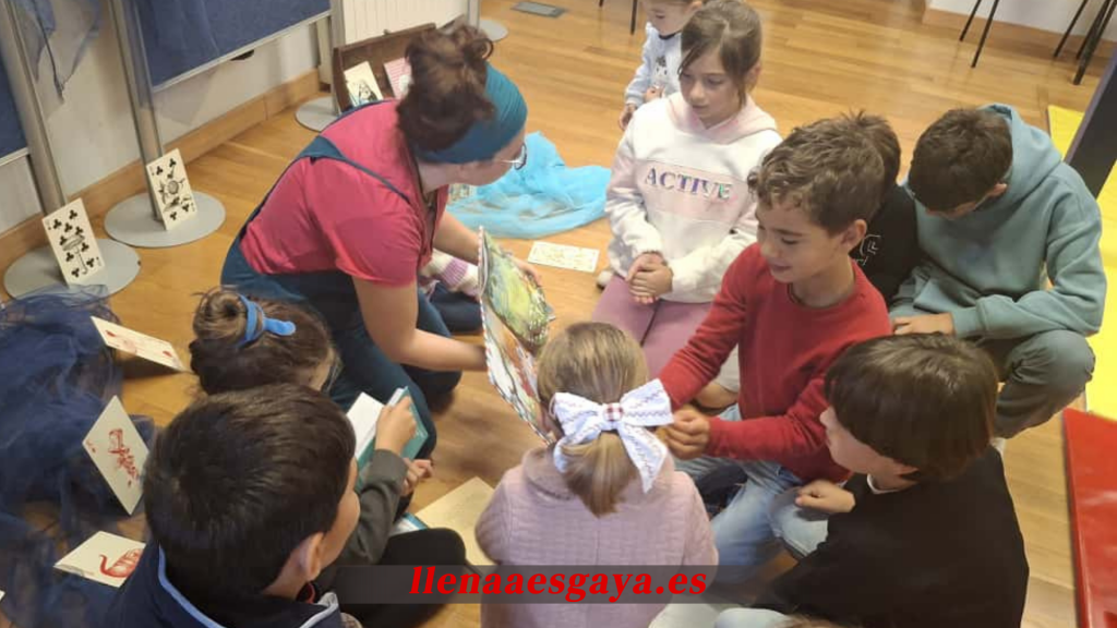 (Imagen 3) Ya por la tarde, el Centru Municipal de Cultura y Llectura “La Casona” de Campomanes fue escenario de “Alicia, ¿estás ahí?”, una actividad de animación lectora intergeneracional a cargo de Cuentos de la Madriguera, inspirada en el mundo fantástico de Alicia en el País de las Maravillas.