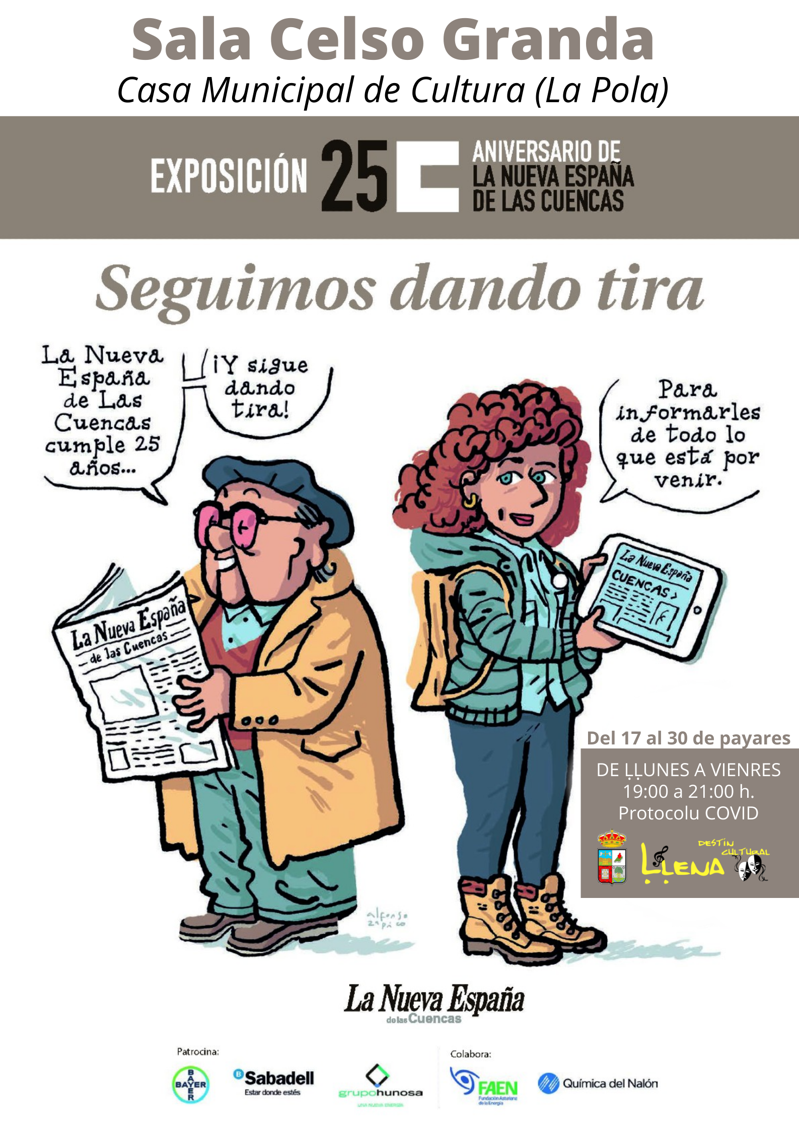 Desde este miércoles 17 de noviembre, y hasta que finalicé el mes, la Casa de la Cultura de La Pola acogerá la exposición ’25 años de La Nueva España de Las Cuencas «seguimos dando tira»‘.