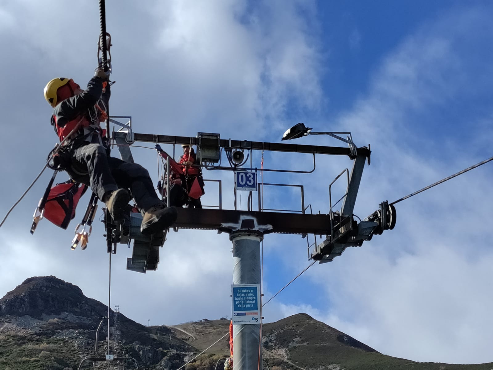 En la mañana de hoy, el Grupo de Rescate del SEPA estuvo practicando en las instalaciones de la Estación Invernal y de Montaña Valgrande-Pajares. En concreto las prácticas de esta mañana consistieron en rescates en telesilla, de cara a prepararse ante las posibles incidencias que pudieran surgir en los próximos meses.