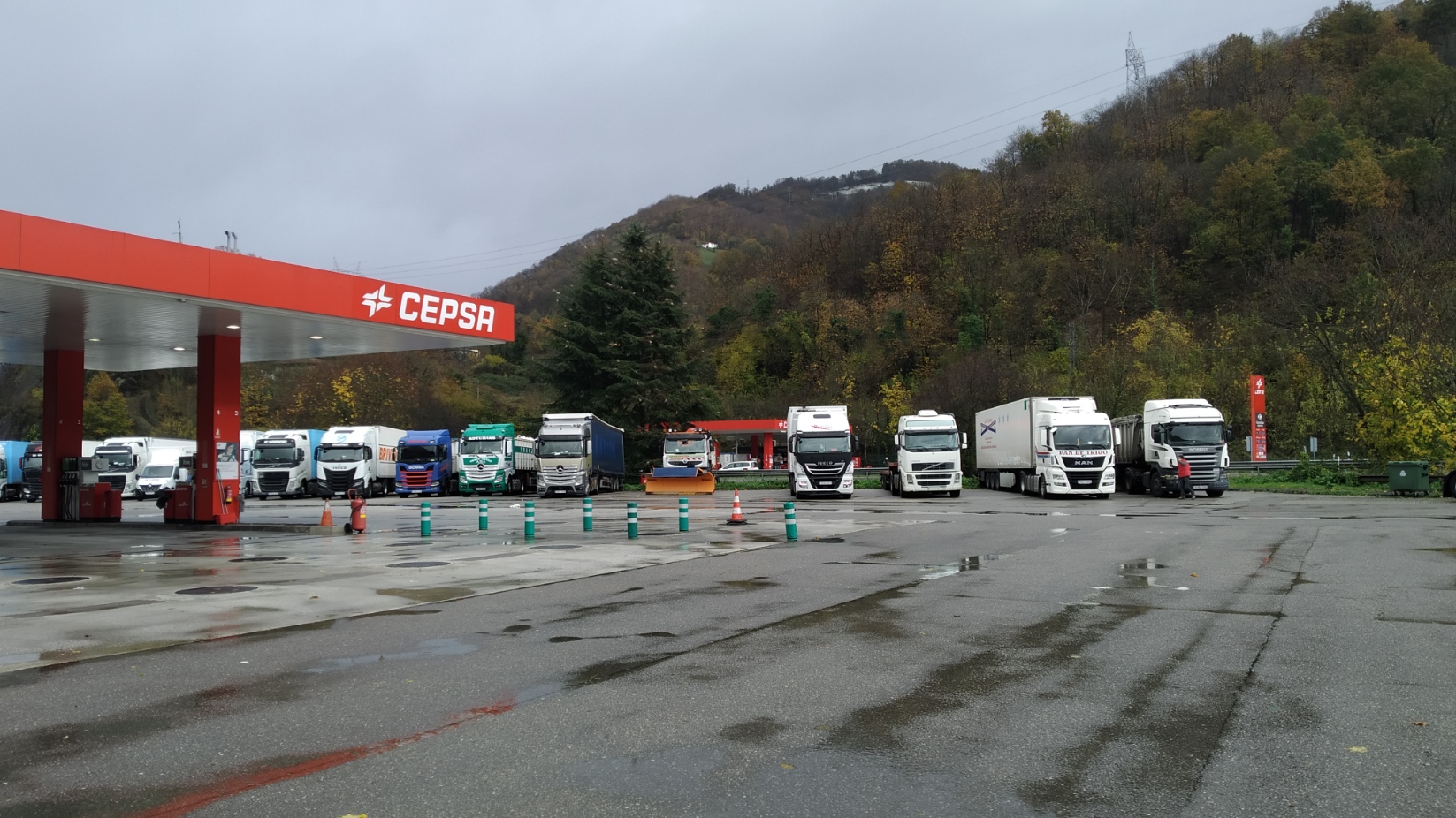 Disponer de aseos es para ellos es fundamental. «En otros aparcamientos de emergencia que ya se han construido no tenemos aseos, nos dejan tirados en medio de la nada«, apuntan. También piden una sala de espera «que pueden ser cuatro paredes y un techo, lo que no queremos es quedarnos en la intemperie«, señalan. Aunque reconocen que es más difícil, a los conductores les gustaría disponer de «algún tipo de cafetería, aunque sean cafés de máquinas expendedoras, poder tomar algo caliente«. En la actualidad, los camiones que se embolsan en el interior del Área de Servicio suelen acudir a la gasolinera a comprar comida y/o bebida.