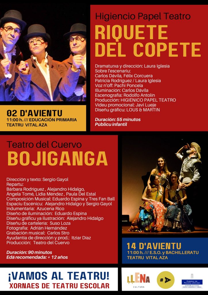 El Área de Cultura del Ayuntamiento de Lena/Ḷḷena ha programado para el próximo mes de diciembre dos obras de teatro, que se representarán en horario de mañanas y para un público escolar.