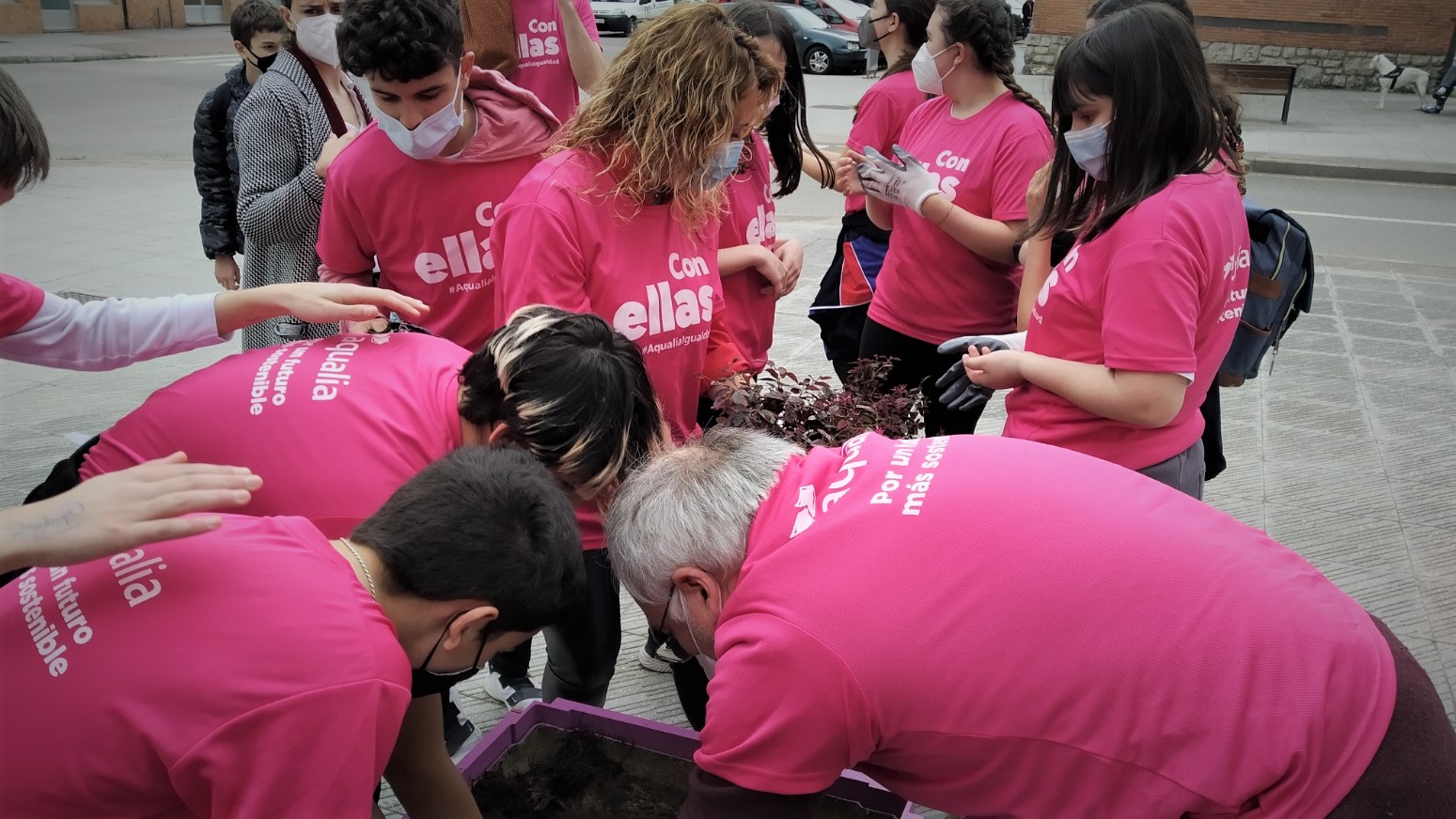 Para realizar la actividad, en la que se plantaron ejemplares de Loropetalum, previamente fueron restauradas las jardineras ubicadas en dicha calle, que fueron pintadas de malva. Antes de dar inicio a la actividad la alcaldesa de Ḷḷena leía un manifiesto. A través de la iniciativa “Con ellas, por un futuro más sostenible” Aqualia se suma al mensaje de Naciones Unidas en el Día Internacional de la Mujer, que aboga por trabajar juntos para construir un futuro sostenible e igualitario.