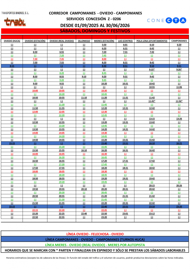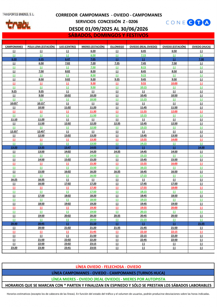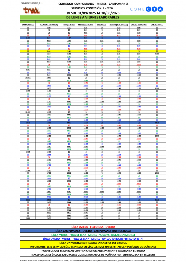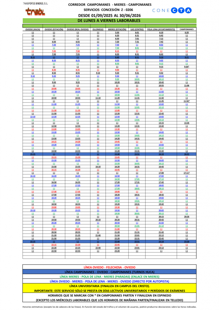 Nuevos horarios líneas de autobús: Del 01/09/2025 al 30/06/2026