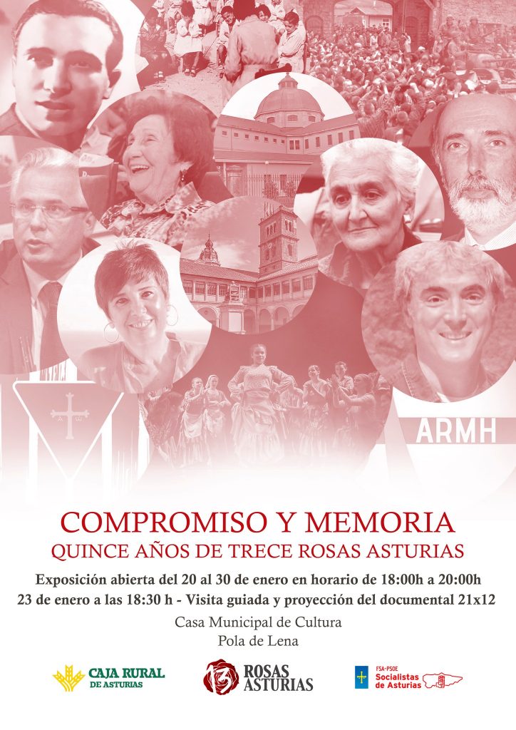 La exposición “Compromiso y Memoria. Quince años de Trece Rosas Asturias” amplía su recorrido y llega a Pola de Lena, donde podrá visitarse en la Casa Municipal de Cultura como un espacio de reflexión sobre la memoria democrática y el trabajo desarrollado por la asociación Trece Rosas Asturias desde su creación en 2009.