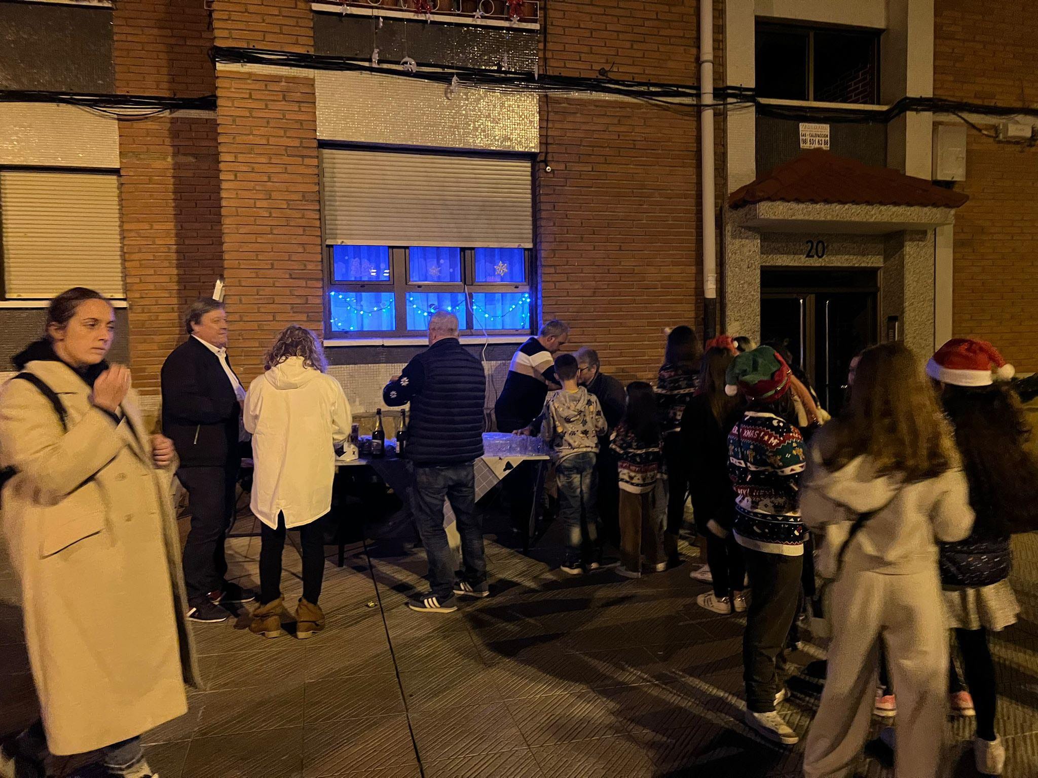 En concreto, por cuestiones de organización, se ha dividido en tres zonas la decoración del barrio. En la tarde-noche de ayer los vecinos de la zona norte inauguraban su decorado con una animada fiesta en la que no falto un brindis o los tradicionales villancicos, cantados a coro por los vecinos.