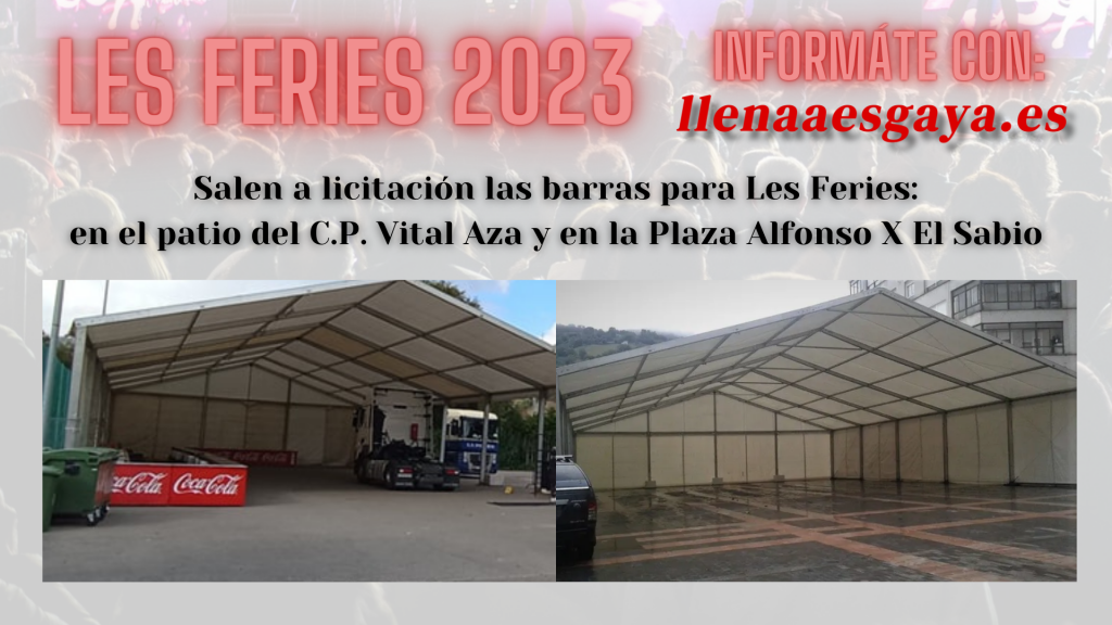 Continúan los preparativos para Les Feries. Como es habitual, se ha publicado en la Plataforma de Contratación del Sector Público el anuncio de apertura de licitación para la adjudicación del contrato correspondiente a autorización demanial para la instalación y explotación de dos barras de bar durante la festividad de “Las Ferias/Les Feries”-2023. El plazo de presentación de ofertas finaliza el día 18/09/2023, inclusive.