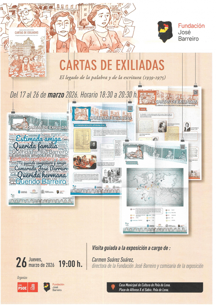 La exposición “Cartas de exiliadas. El legado de la palabra y de la escritura (1939-1975)” se despedirá en Pola de Lena con una visita guiada que tendrá lugar este jueves 26 de marzo a las 19:00 horas en la Casa Municipal de Cultura.