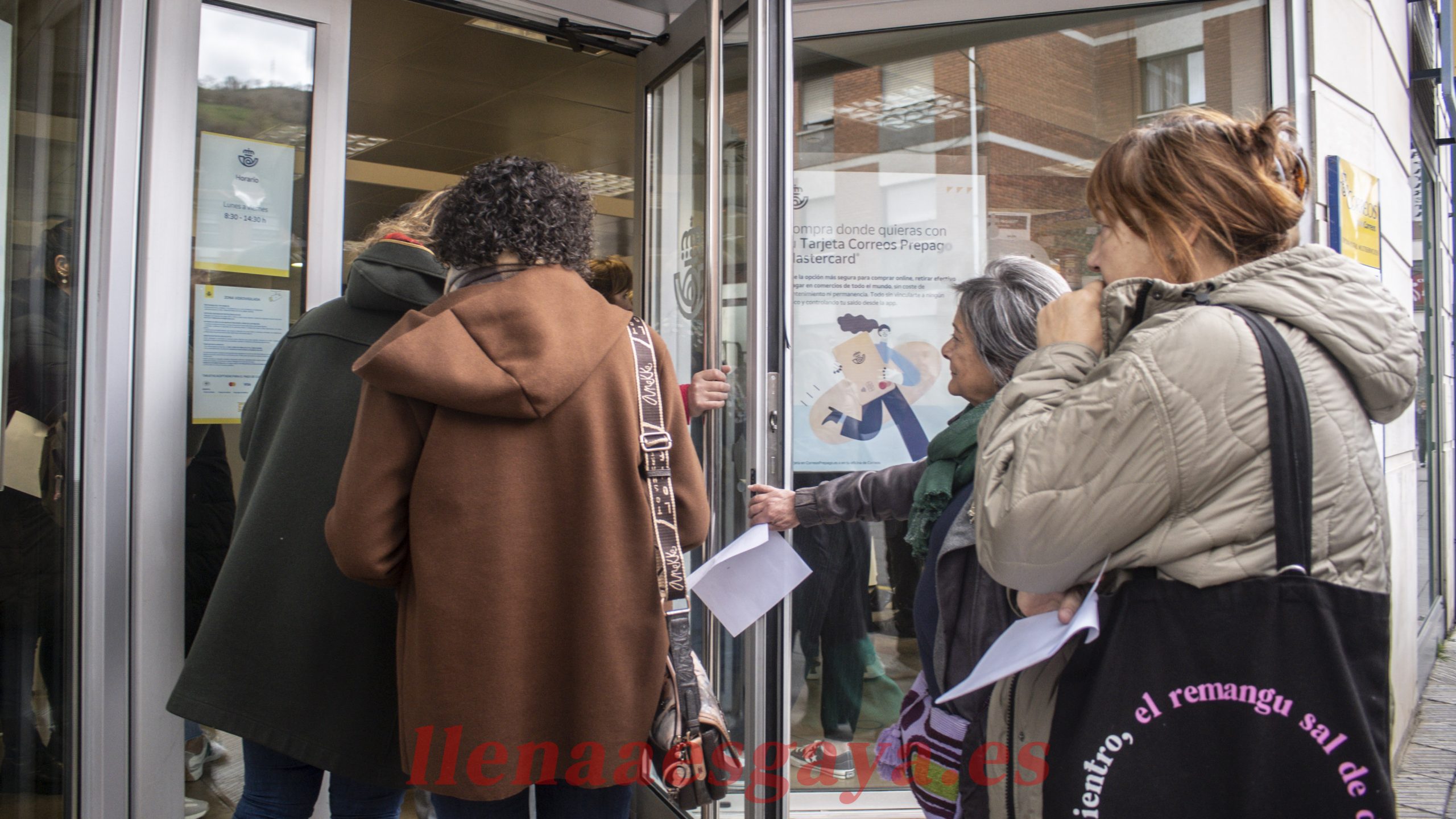 En la mañana de ayer, viernes 21 de febrero, una treintena de colectivos presentaban quejas formales y escritas ante la oficina de Correos de La Pola. Era una de las acciones que se están llevando a cabo estas semanas para denunciar la decadente situación del servicio en nuestro municipio, y que incluyen otras iniciativas como la recogida de firmas, tanto online como física.